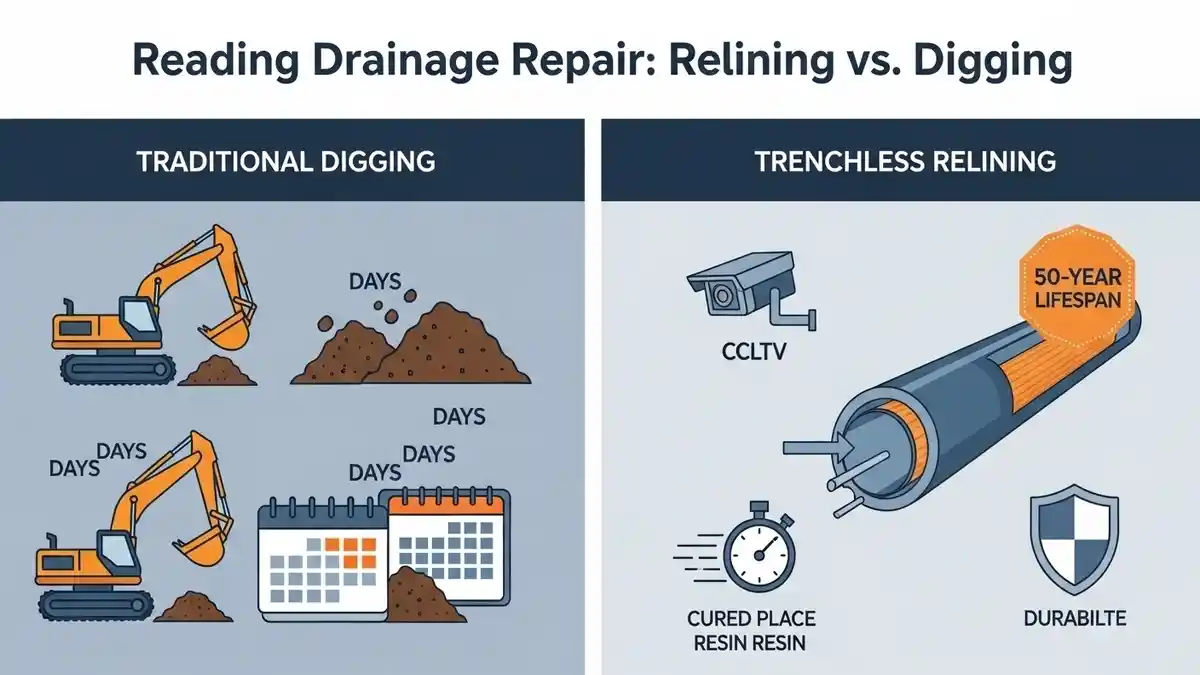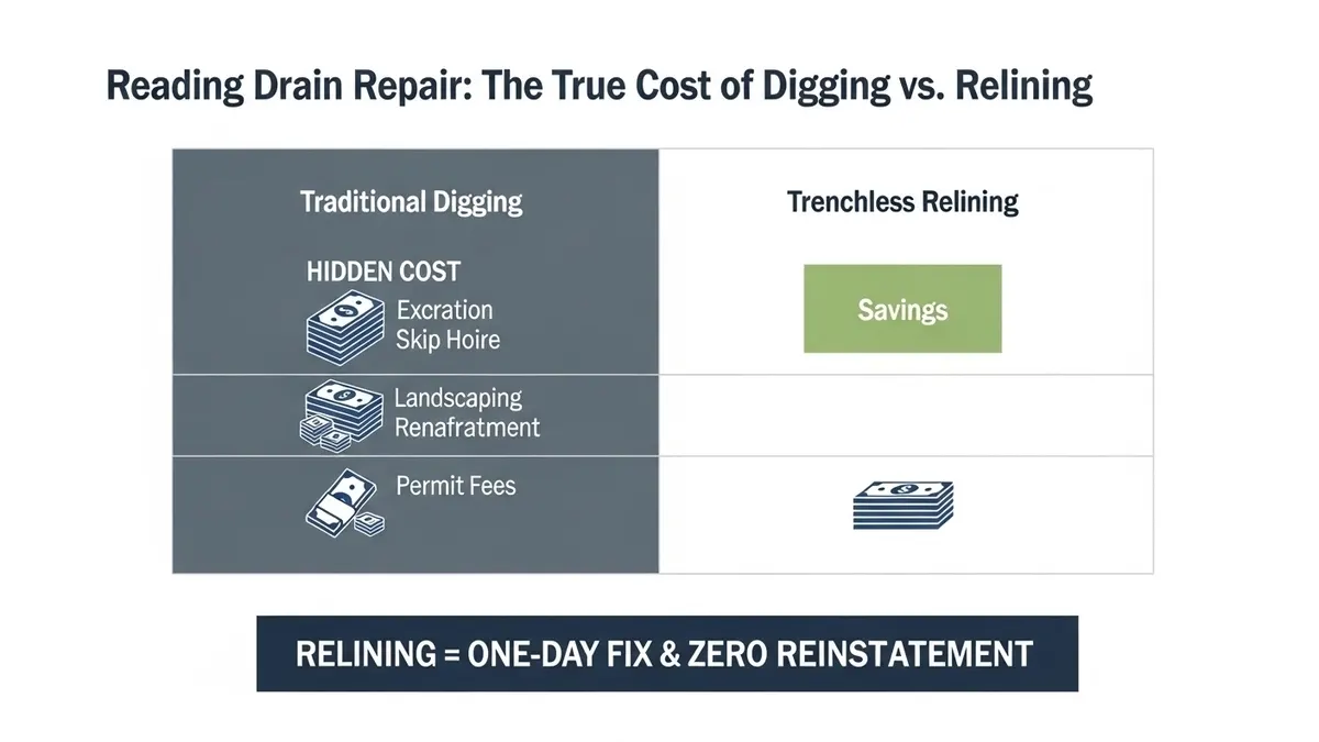 Avoid costly, messy excavations. Compare Hindhead Drain Relining vs Digging to save your home, time, and money with our expert, minimally invasive, and durable no-dig repair solutions for local drains.
